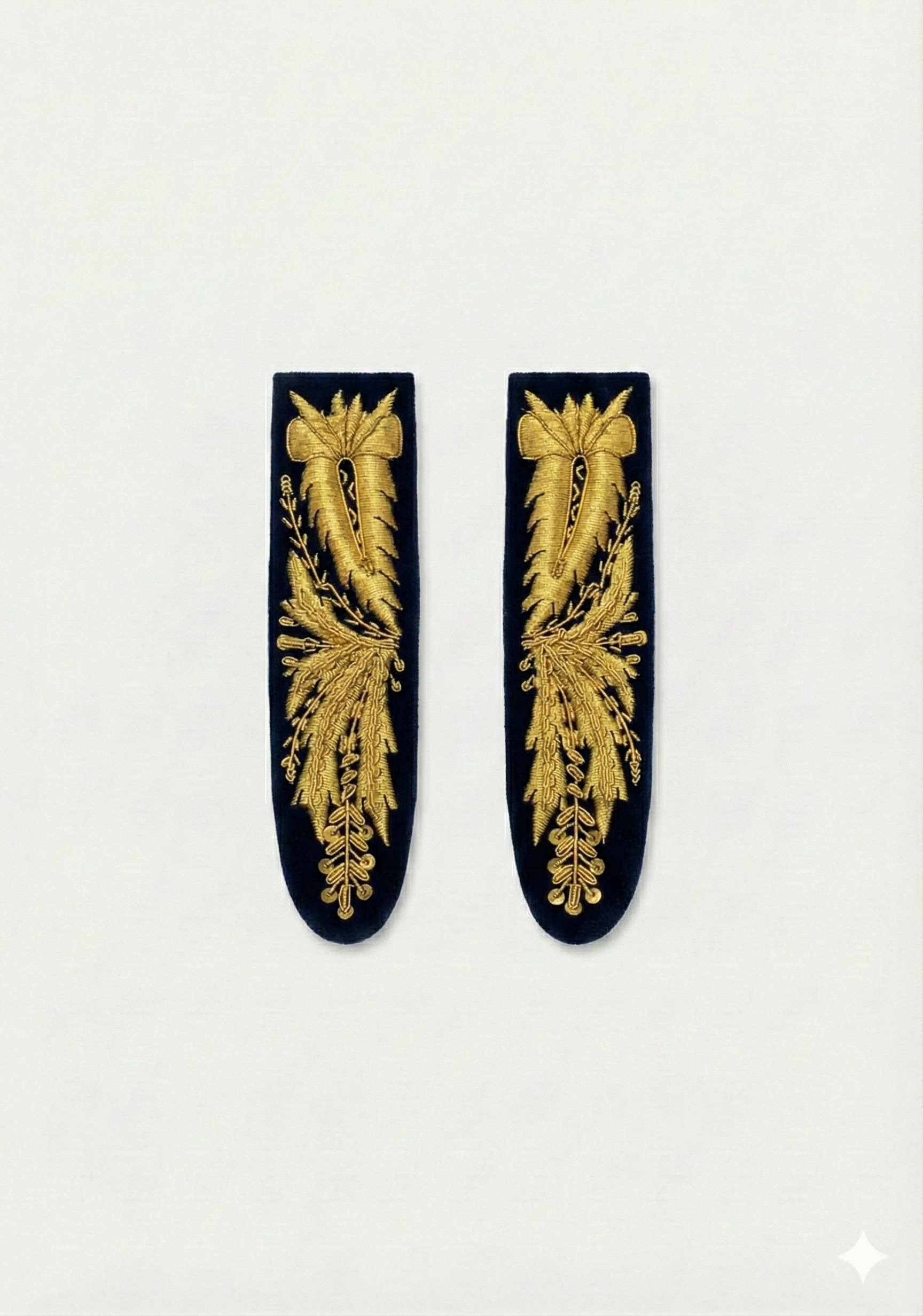 Oro su Panno Blu Notte La versione classica per Ufficiali, dove il ricamo dorato risalta con eleganza sul fondo scuro, tipica delle uniformi di rappresentanza.