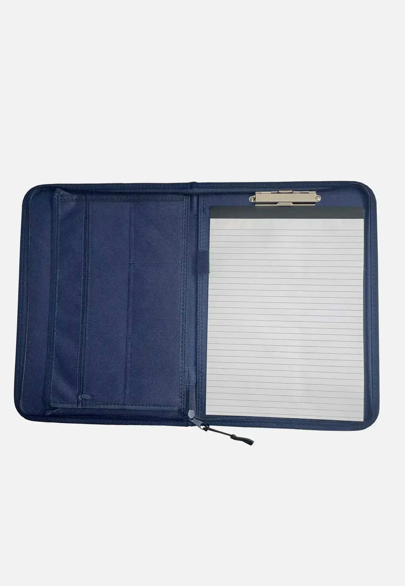 - Interno: tasca con quattro scomparti (uno con cerniera), portapenne, tasca porta block notes, molla reggi blocco