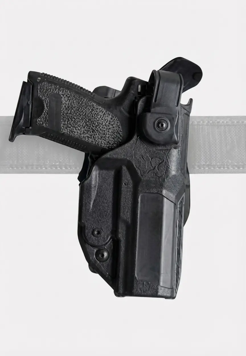 6707 2-Fast EXTREME è una fondina professionale per uso estremo in Polyform,equipaggiata con 4 livelli di ritenzione. Il primo è il Sistema Automatico di Sicurezza Evolock-S Evolution Locking System, un meccanismo interno di blocco attivato dalpeso dell’arma, a estrazione rapida e semplice. Il secondo è il Sistema Rotoloop-S,un laccio esterno di protezione dell’arma a chiusura e apertura automatica mediante meccanismo di rotazione attivabile a pressione. Grazie alla soluzione 2-Fast i due sistemi sono integrati e azionabili simultaneamente in fase di estrazione con un unico movimento naturale del pollice. Il terzo è il Dispositivo di Sicurezza Roto Guard, uno scudo protettivo contro urti o tentativi di sottrazione abbinabile ai sistemi Rotoloop-S, LL Look Loop e Rotolock. Il quarto è il dispositivo BS-PRO – Back Shield Protection, una linguetta rigida posta posteriormente alla leva di rilascio per impedirne lo sblocco dalla dietro. Il quinto è il dispositivo STR SYSTEM costituito da una vite di ritenzione che frena il movimento interno dell’arma agendo direttamente sul carrello. Il corpo è abbinabile al Sistema di Portabilità Multilink 2, un interasse difissaggio a tre viti distanziate di 120° per applicare la stessa fondina a tutti i supporti.