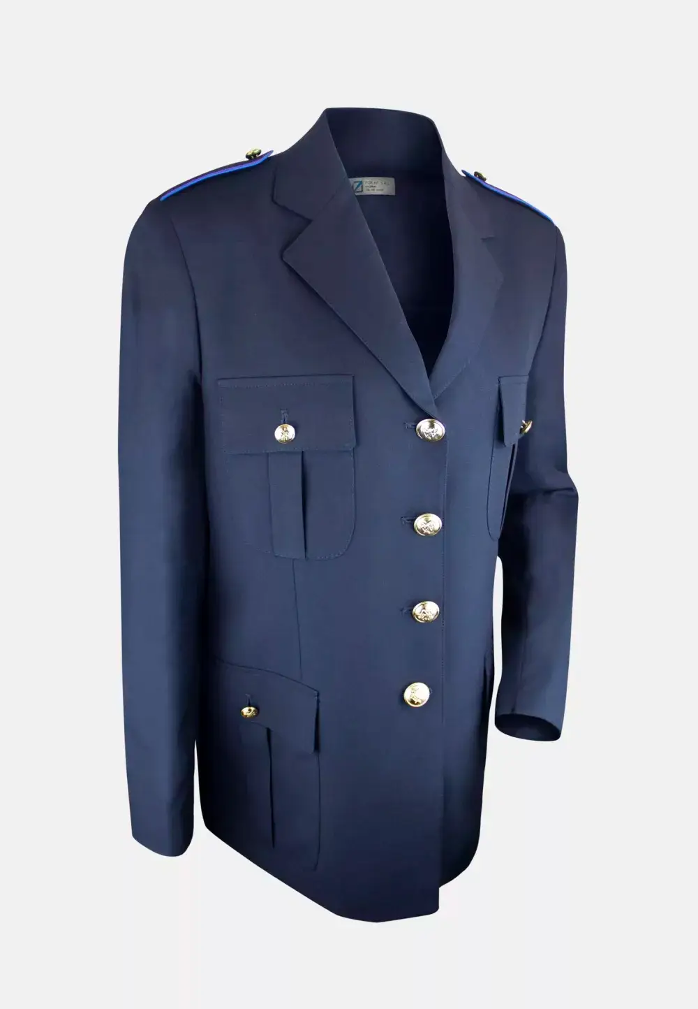 Giacca invernale da uniforme femminile, confezionata con taglio sartoriale conformato specifico per garantire comfort e vestibilità ottimale anche alle fisicità più morbide. Il capo, nel colore d’ordinanza blu notte, mantiene inalterati l’eleganza e i requisiti tecnici del capitolato della Polizia Locale della Regione Sicilia, offrendo una linea che valorizza la figura curvy senza costringere, grazie anche all’impiego del tessuto elasticizzato Marzotto F991.