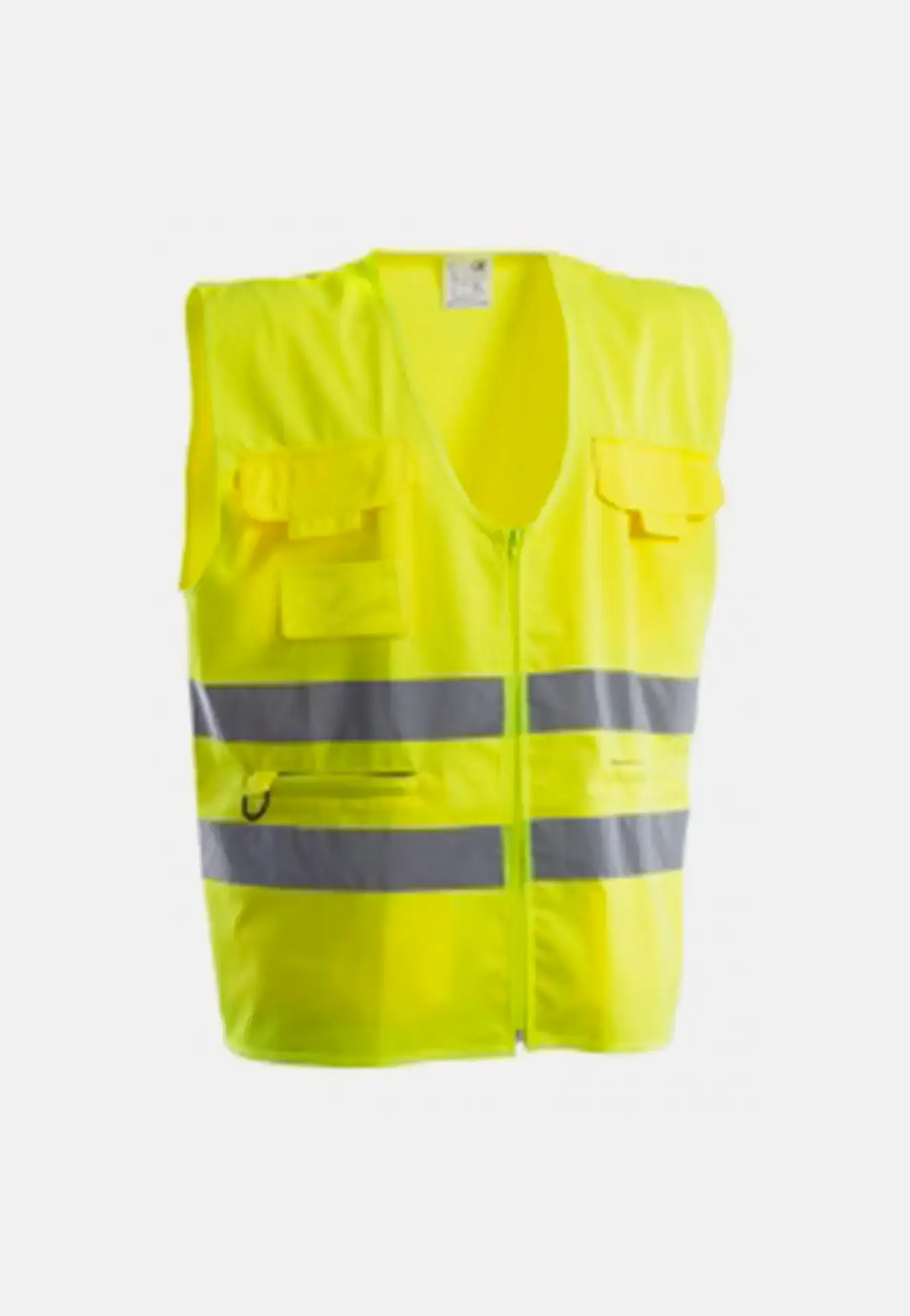 chiusura centrale con cerniera, portabadge staccabile al petto – 2 tasche al petto chiuse con pattina e velcro, 2 tasche inferiori chiuse con cerniera, anello portachiavi sulla tasca inferiore destra – Personalizzazione inclusa